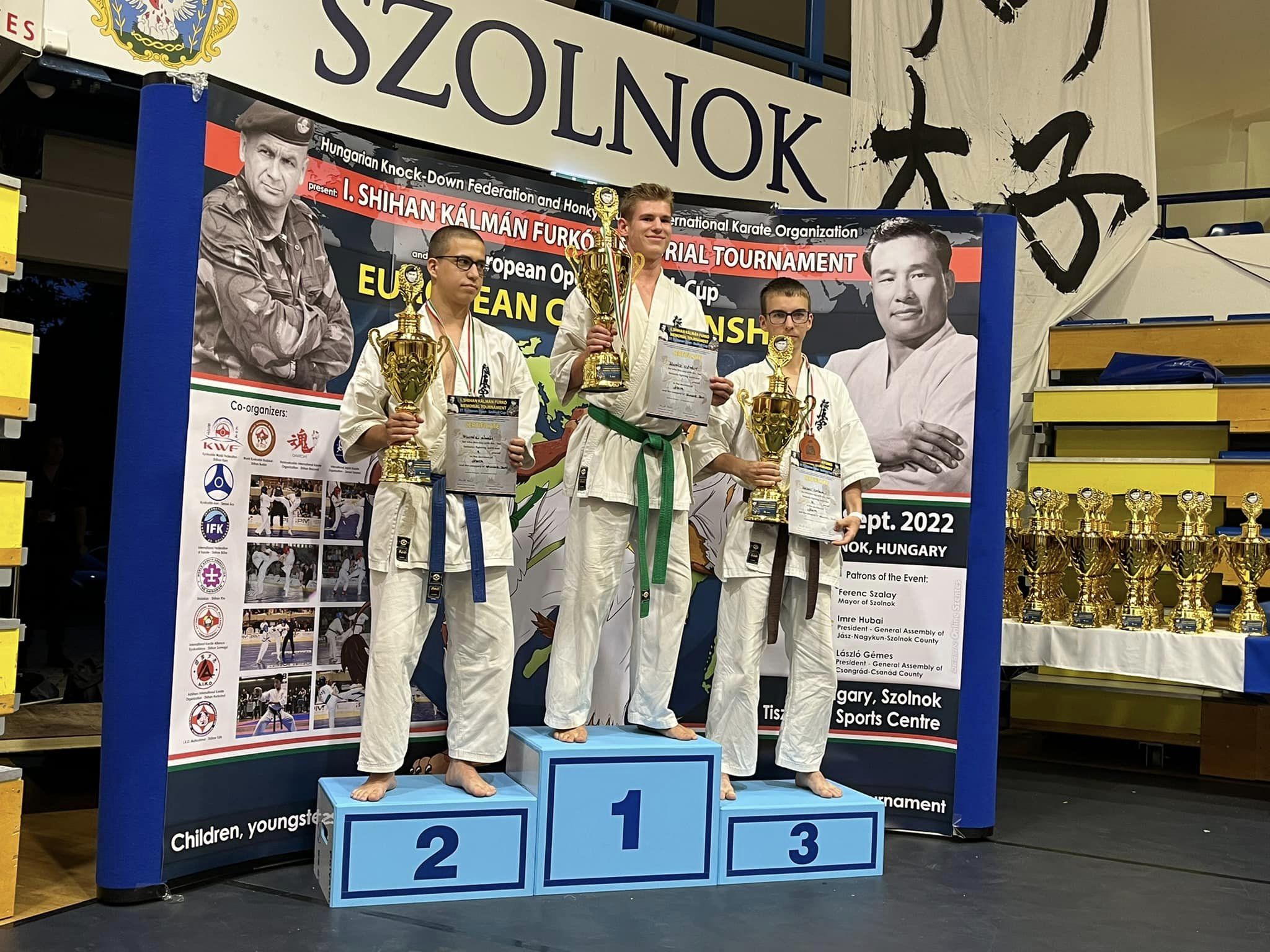 2022. szeptember 10-én részvettünk az I. Shihan Furkó Kálmán Emlékverseny 37. Szolnok Kupa Nyílt Európa Bajnokságon. A versenyre már nyár közepétől készült a csapat, volt aki két-három edzéssel naponta. Ráadásnak a hétvégék is gyakorlással többször irányított edzéssel teltek. A versenyre már az előző napon leutaztunk. Miután megérkeztünk megtörtént a regisztráció, a rajtszámok kiosztása és felvarrása, majd a Shihan Furkó Kálmán tiszteletére felállított emlékmű felavatása következett.