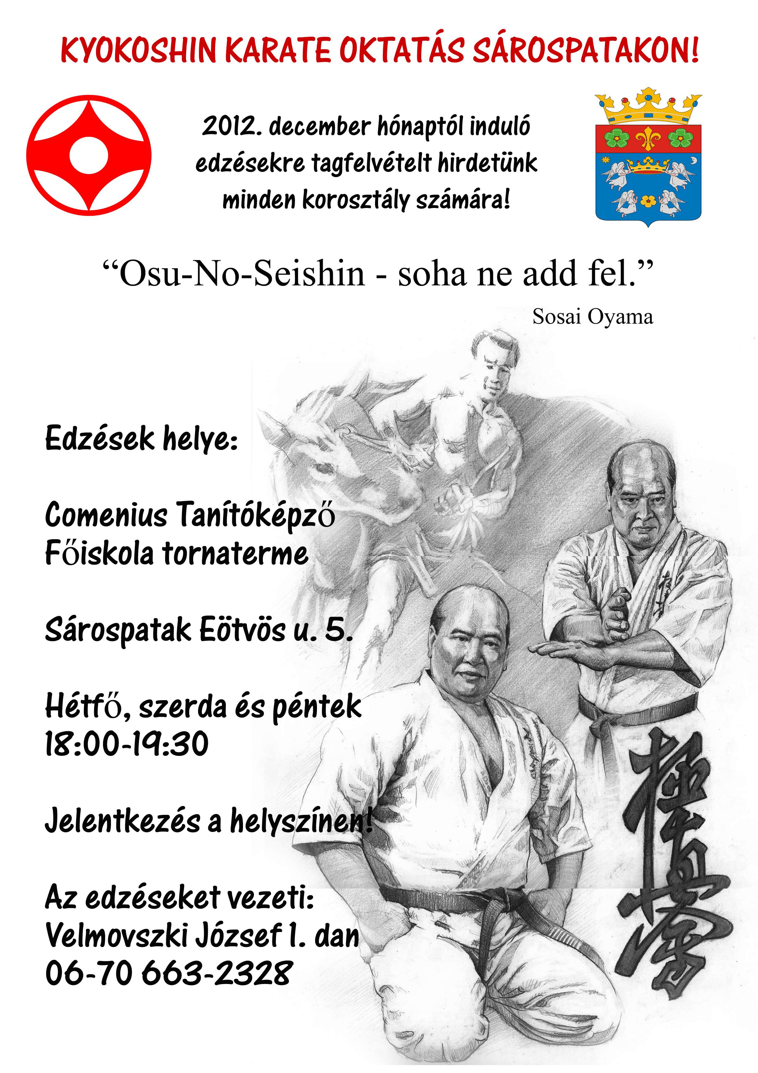 Hosszú idő után ismét van kyokushin karate edzés Sárospatakon. Az SKK SE klubjaként sempai Velmovszki József Közel harminc fővel elkezdte az edzéseket. A csapat nagyon lelkes és készülnek az első megmérettetésekre.